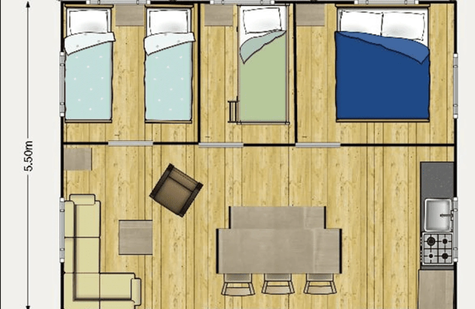 Découvrez le confort du glamping dans l'une de nos spacieuses tentes safari. Idéales pour les familles de 4 adultes et 2 enfants, par exemple.